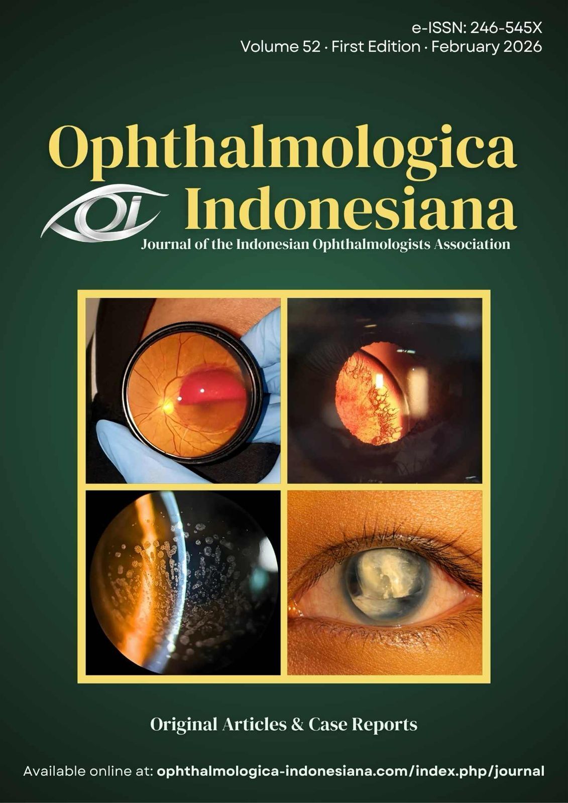 Ophthalmologica Indonesiana is an open access journal by the Indonesian Ophthalmologists Associations (IOA, Persatuan Dokter spesialis Mata Indonesia (Perdami)). Ophthalmologica Indonesiana is an official publication from IOA contains scientific ophthalmology-associated articles (case report, original article, literature review, and laboratory science) in English or Bahasa Indonesia, published two times a year, online (e-ISSN 2460-545X) and printed (ISSN 0126-1193)